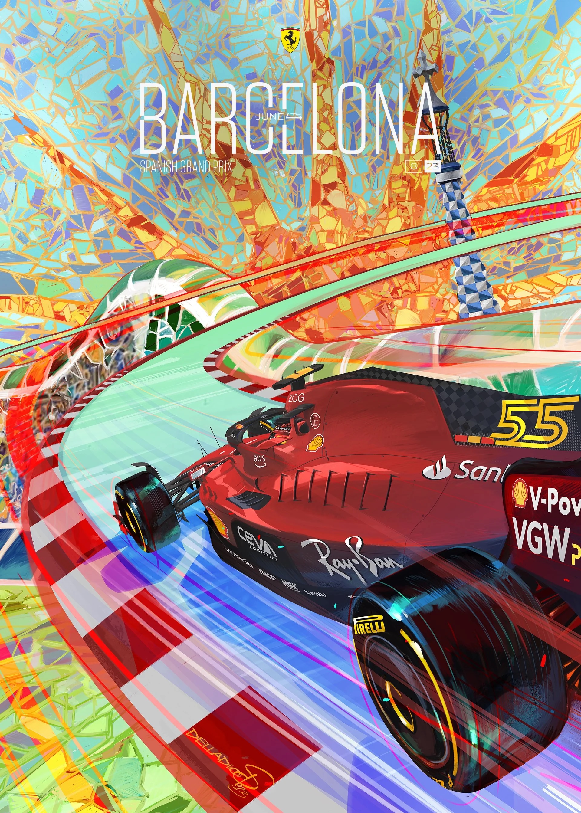 2023 Ferrari F1 RACE 8 Spain grand prix race cover art poster